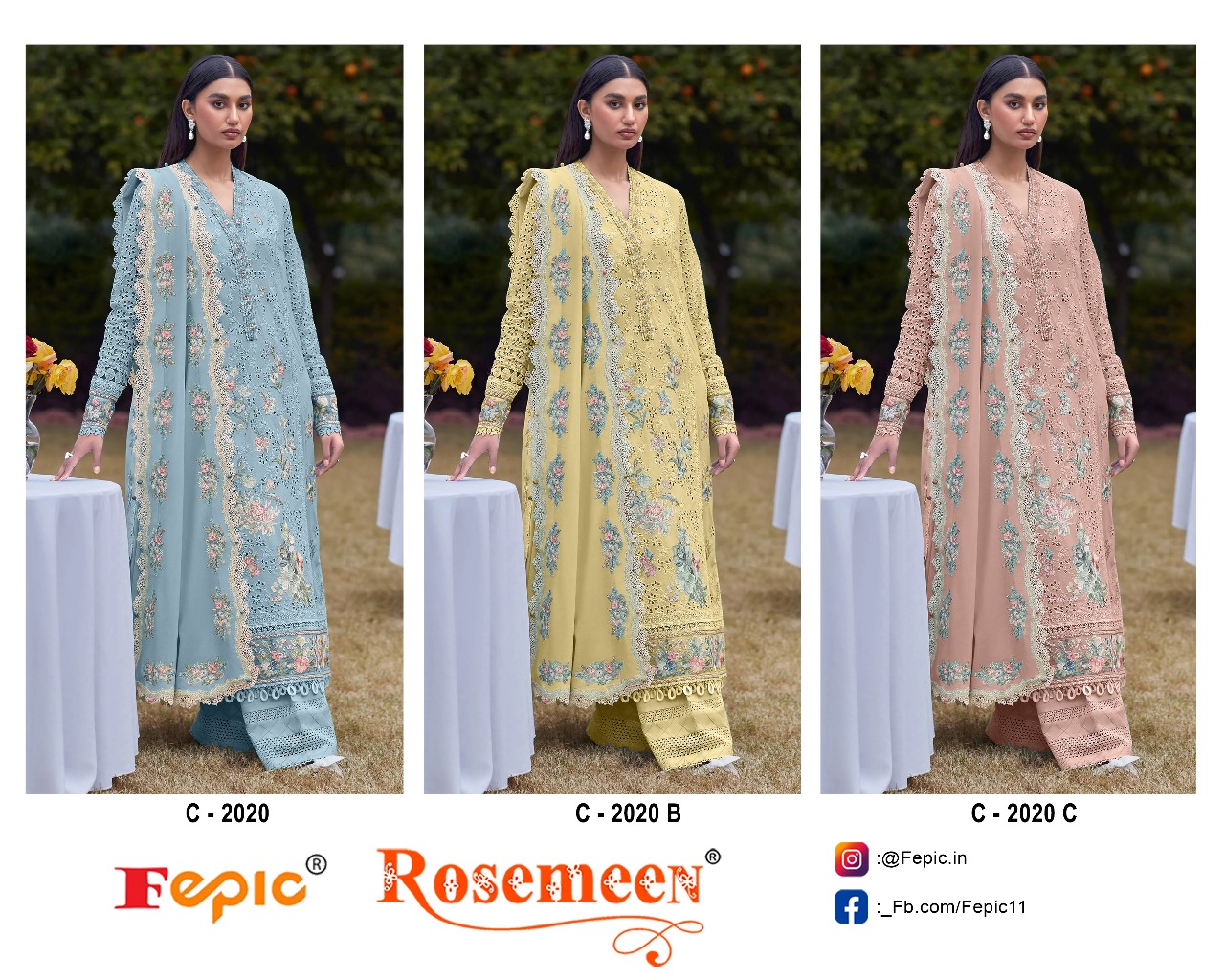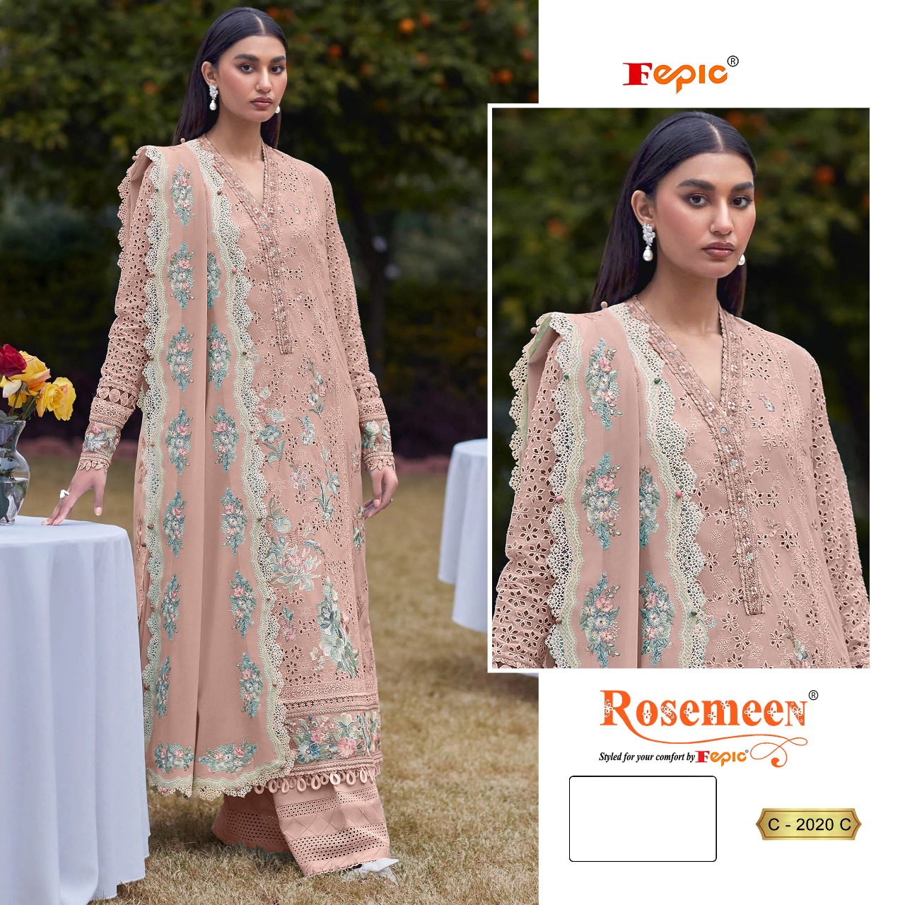 Fepic Rosemeen 2020 Designer Cambric Embroidered Pakistani Suit.