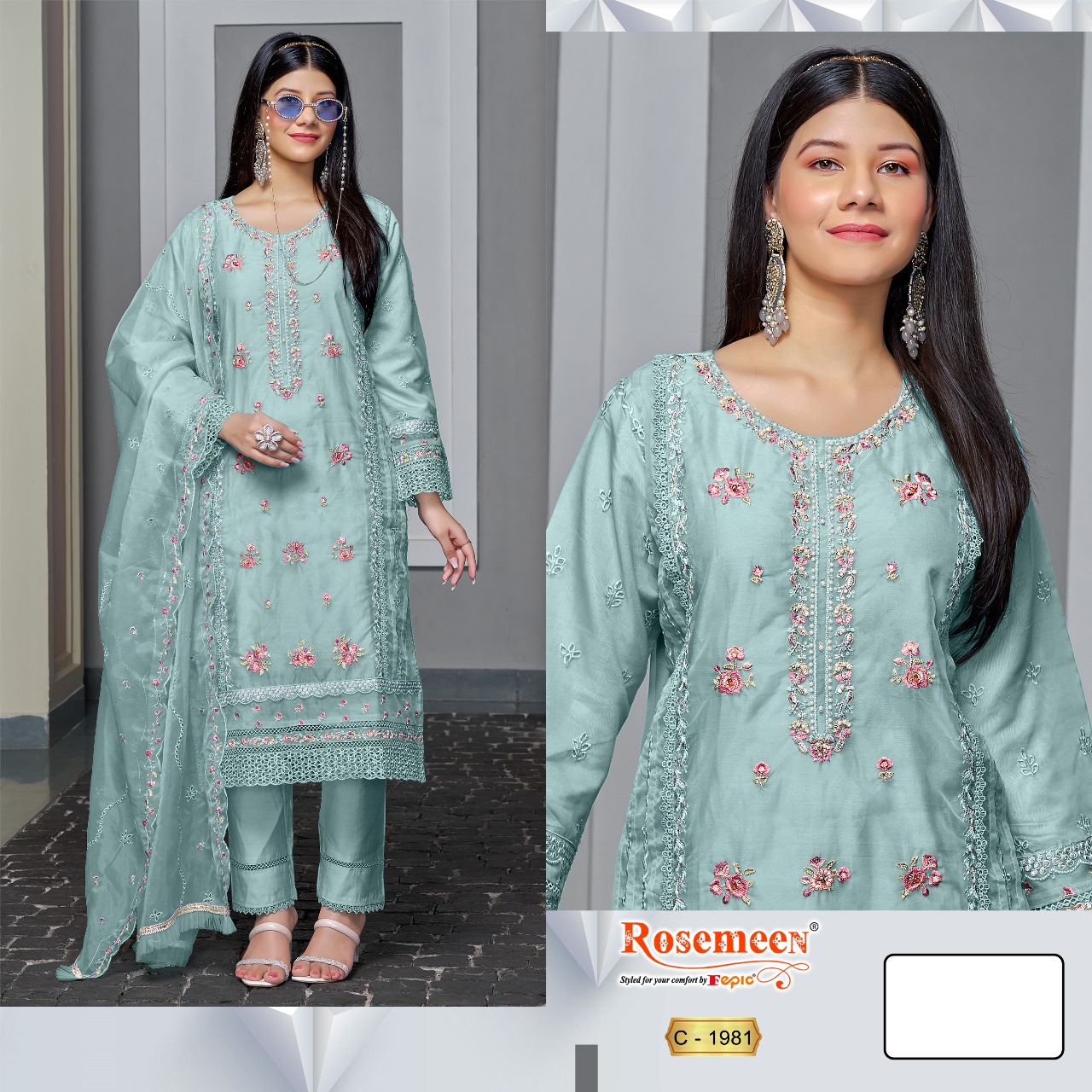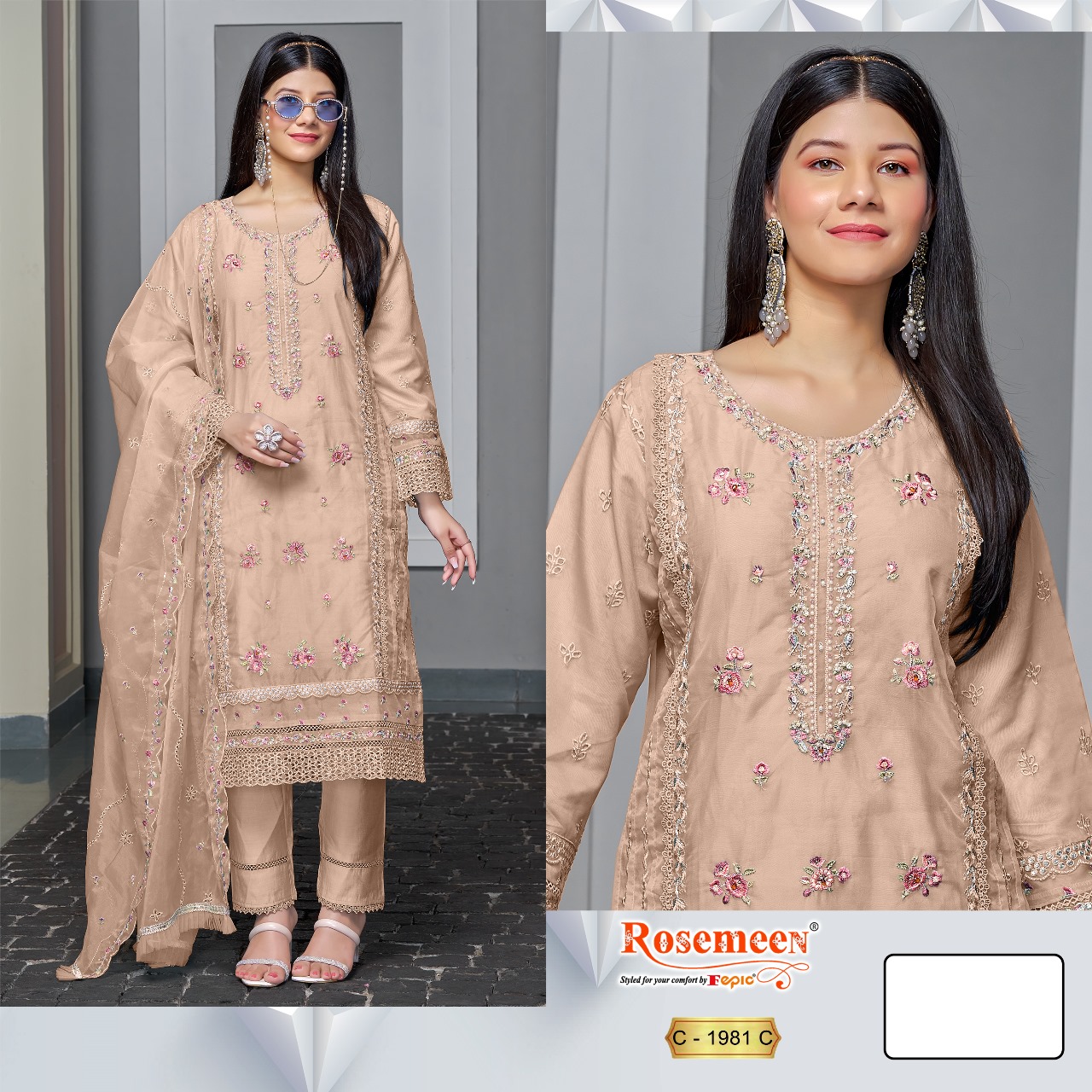 Fepic Rosemeen D. No 1918 Wholesale Organza Embroidered Pakistani Suit.