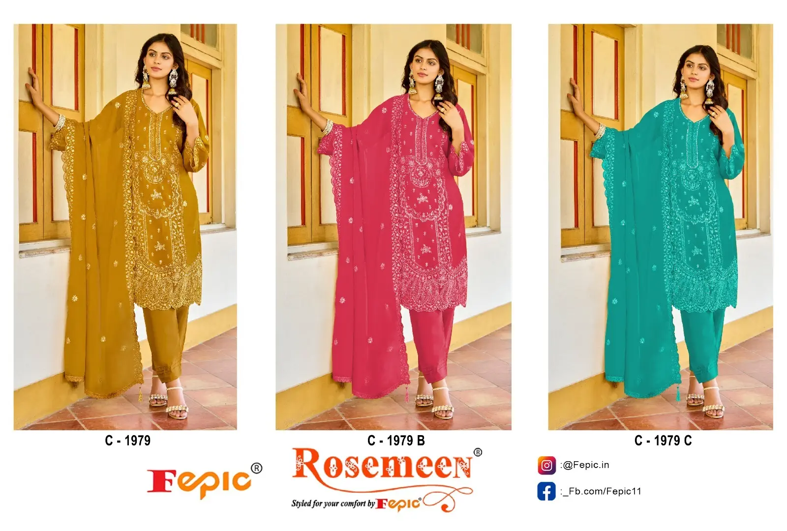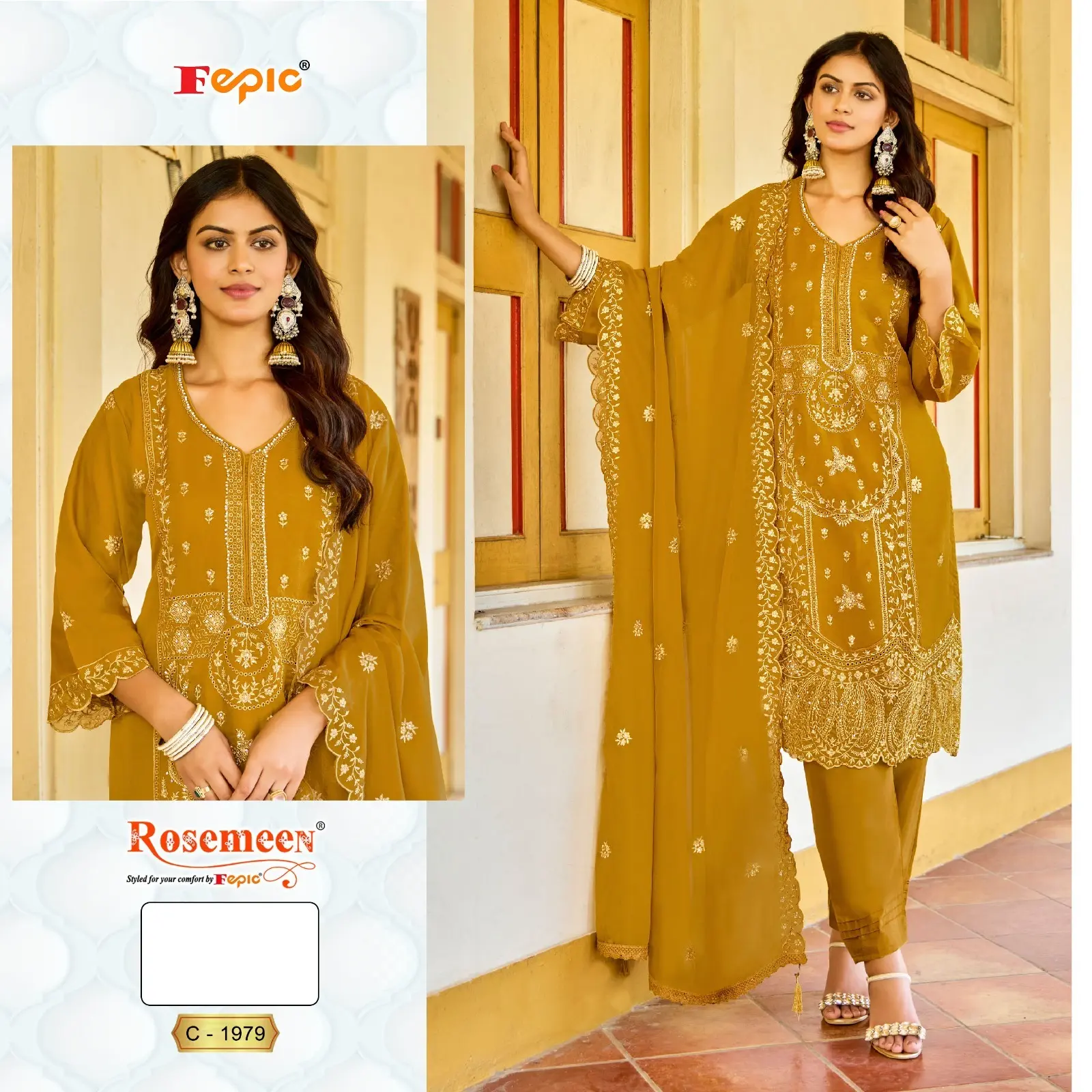 Fepic Rosemeen Organza Embroidered Salwar Suit Wholesale Catalog.