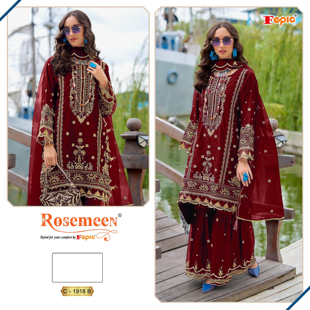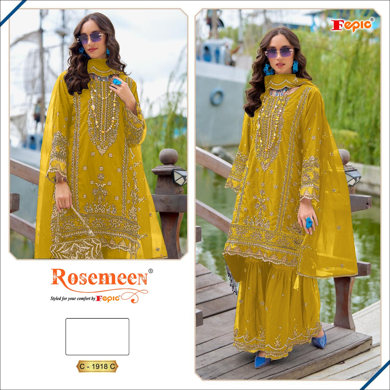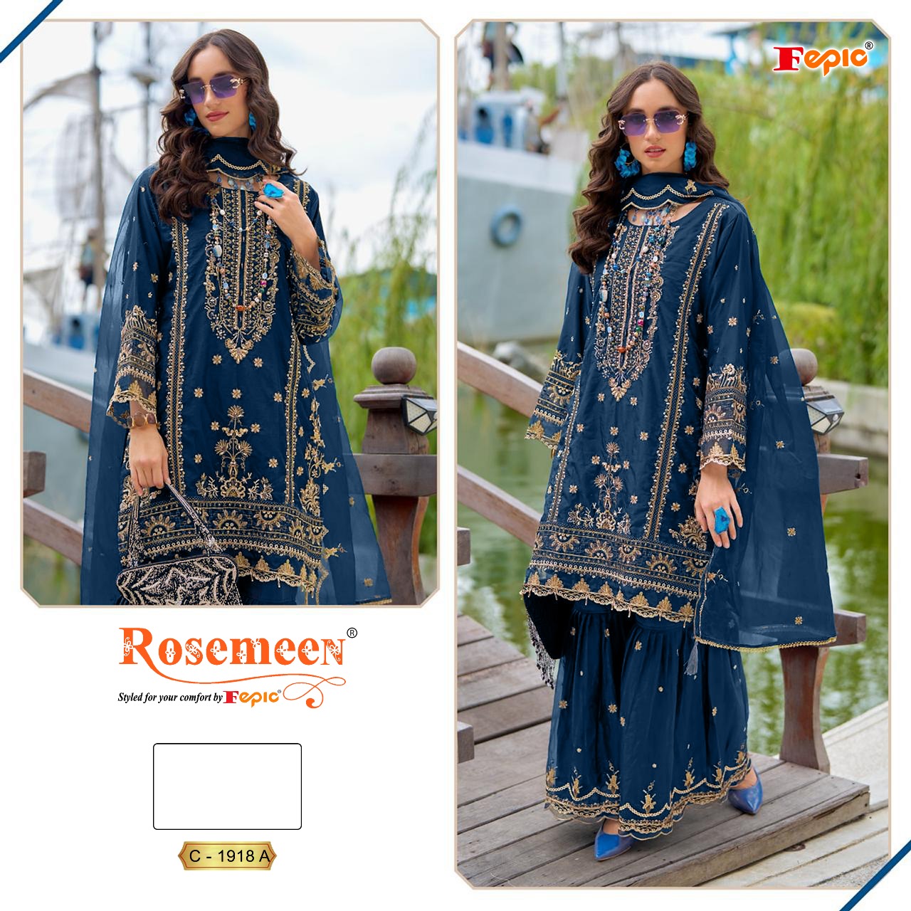 Fepic Rosemeen Premium Organza Embroidered Salwar Suit Collection.