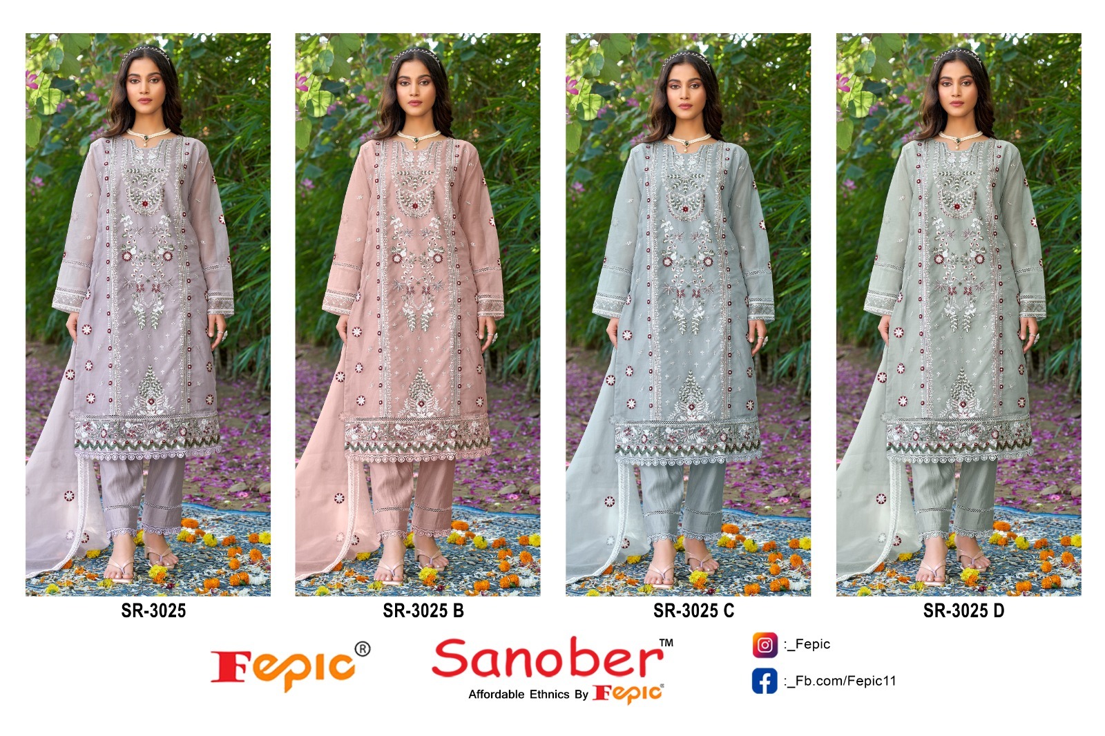 Fepic Sr3025 Organza Wholesale Pakistani Salwar Suit Collection