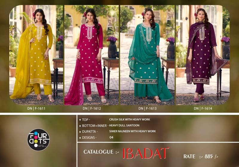 Four Dots Ibadat Crush Silk Wholesale Salwar Suit Collection