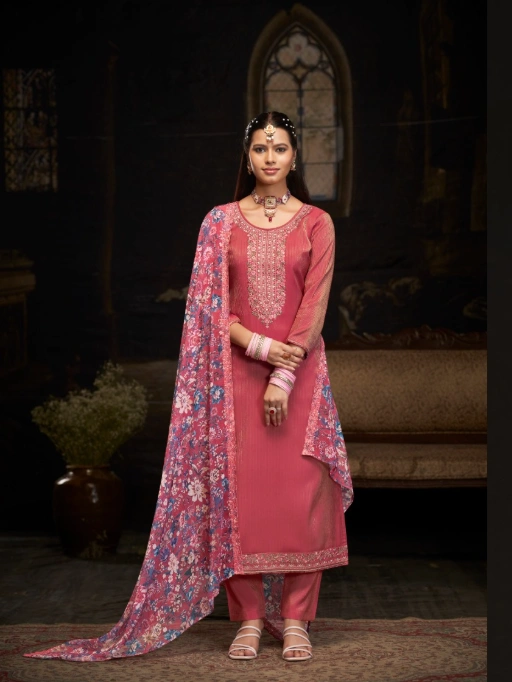 Classy and elegant suit set designed with premium Simar fabrics. Features digital prints and delicate work—perfect for party and festive wear.