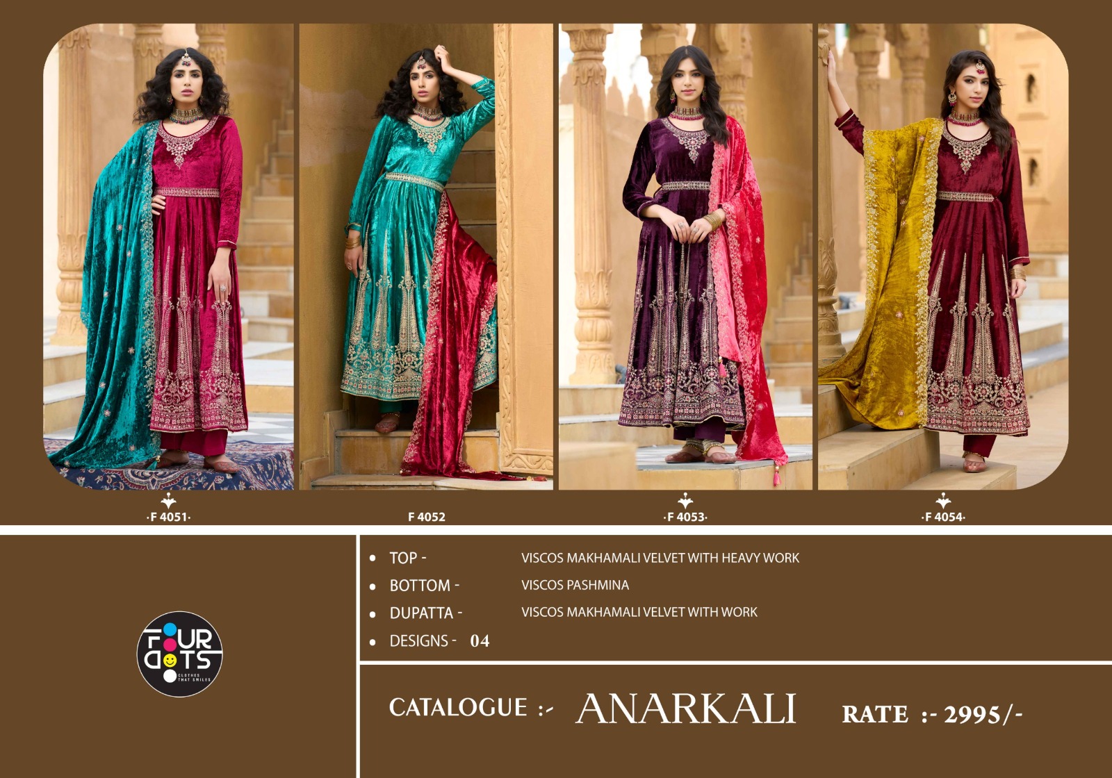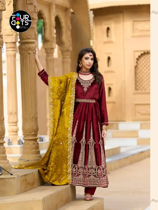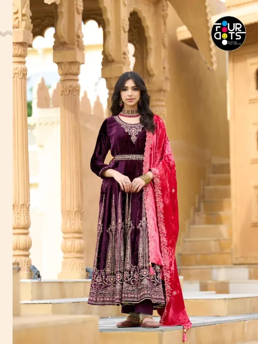 FOURDOTS Makhmal Wholesale Velvet Anarkali Kurti Collection.