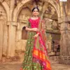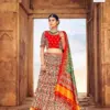 - Lehenga: The Gaji Silk Lehenga features intricate detailing and exquisite craftsmanship, making it the focal point of your ensemble. With its luxurious fabric and stunning design, the lehenga drapes beautifully, accentuating your silhouette and exuding elegance with every step you take.
