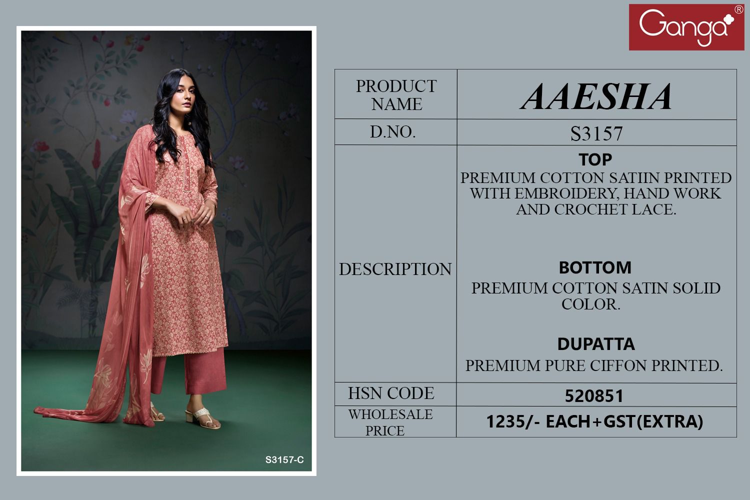 Upgrade your ethnic collection with the elegance of Ganga AAESHA 3157 Fancy Salwar Suit. Limited stock available—book your orders now!