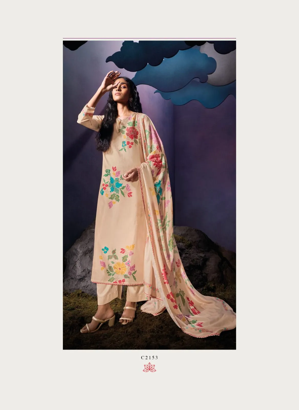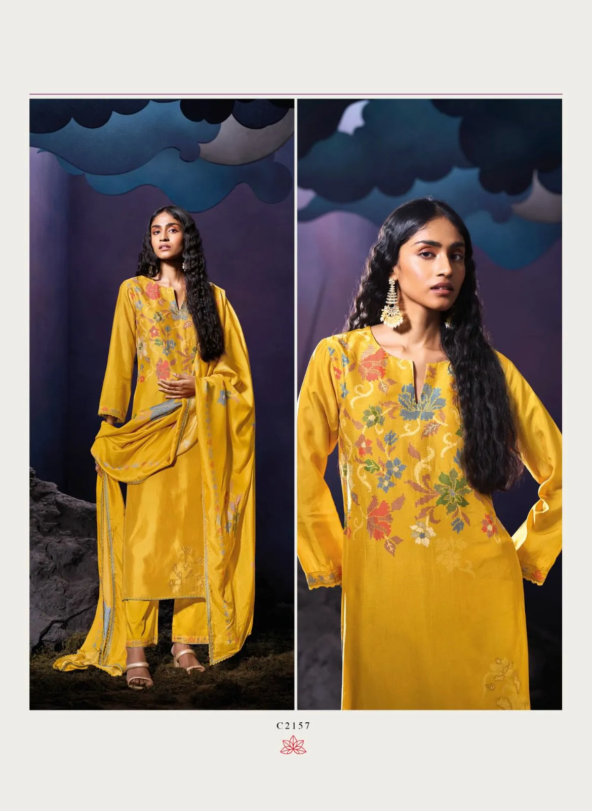 | Top | Premium Pure Bemberg Russian Silk Printed with Hand Work, Hand Embroidery & Crochet Lace. |