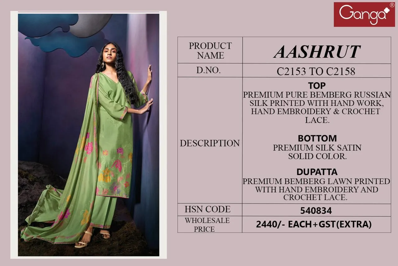 Ganga Aashrut Premium Pure Bemberg Russian Wholesale Designer Salwar Suit Collection