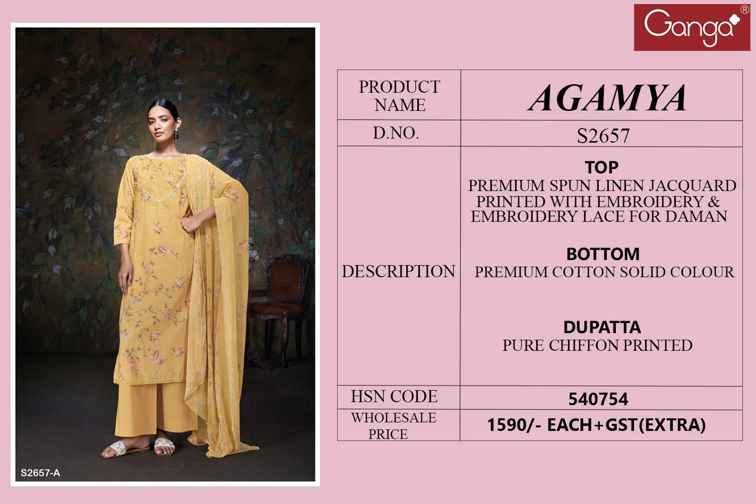 Ganga Agamya 2657 Premium Spun Linen Wholesale Fancy Salwar Suit Catalog