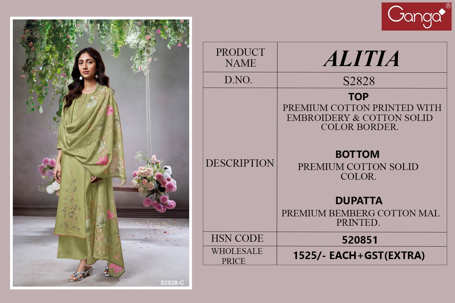 - Top: Premium Cotton with exquisite prints, embroidery detailing, and a chic solid-color cotton border.