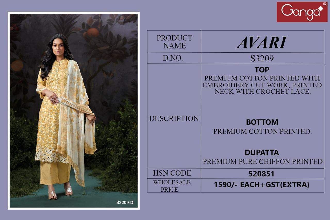 Ganga Avari 3209 Premium Cotton Printed Wholesale Salwar Suit Collection