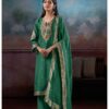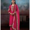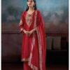 The bottom is made from premium silk satin in a solid tone for an elegant contrast, while the dupatta matches perfectly in viscose silk jacquard with lace detailing — giving the entire ensemble a refined and festive appeal.