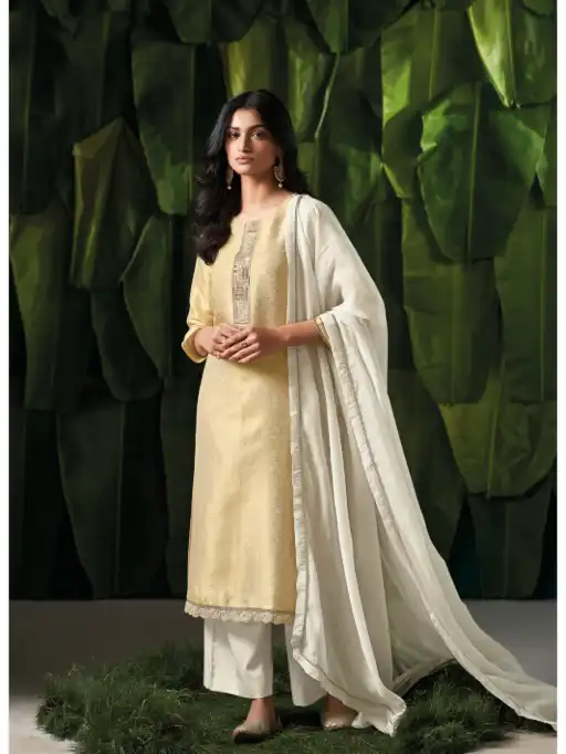 ✓ Bemberg silk top with hand embroidery ✓ Viscose silk bottom ✓ Organza dupatta with foil print ✓ ₹2410 + GST