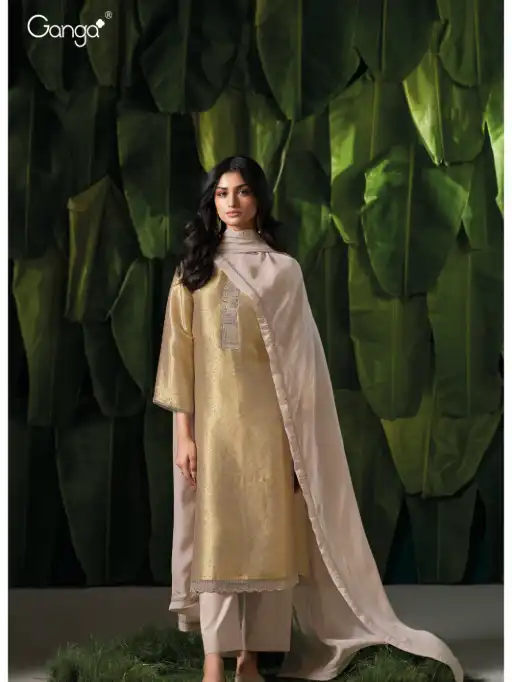 ✨ Indulge in luxury with Ganga’s Carisma 3447 – crafted in Bemberg silk with delicate hand embroidery, paired with a rich organza foil-printed dupatta for timeless elegance.