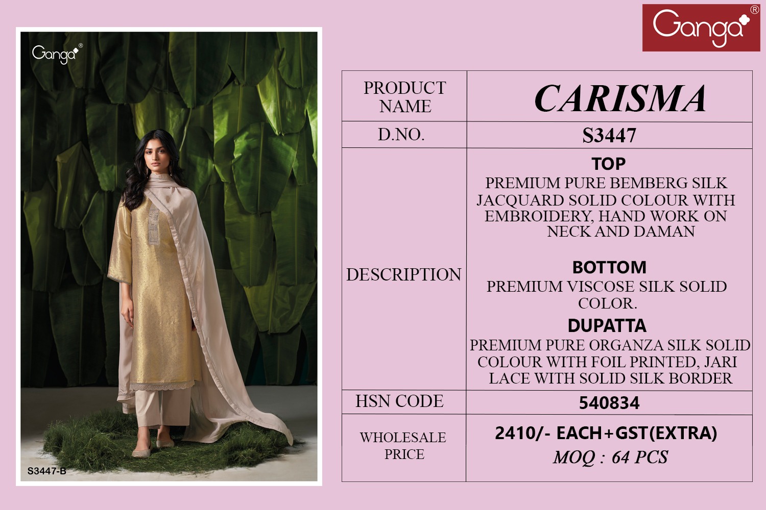 Ganga Carisma 3447 Wholesale Premium Silk Salwar Kameez Collection.
