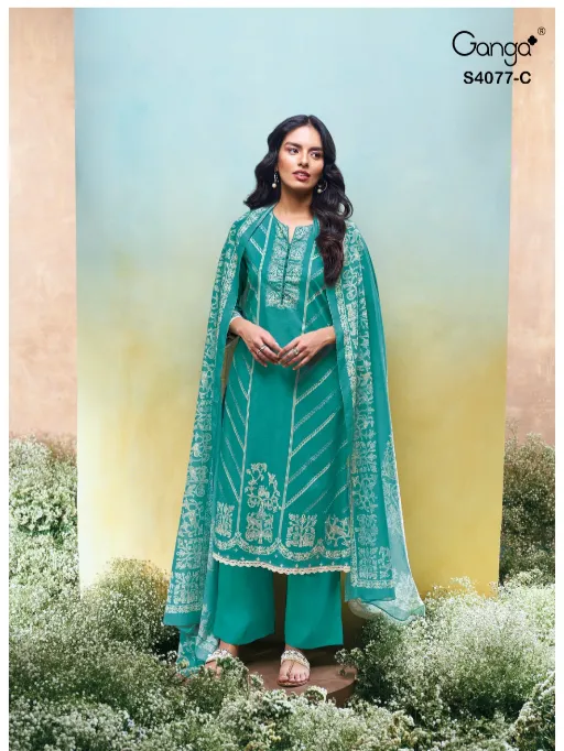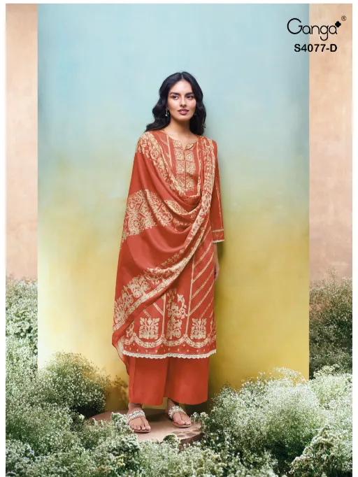 Ganga Ceyoni 4077 Wholesale Pashmina Printed Embroidery Salwar Kameez.