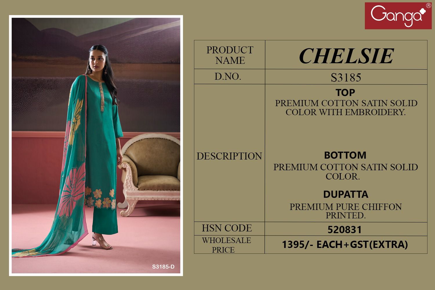 Ganga Chelsie 3185 Premium Cotton Satin Solid Wholesale Fancy Salwar Suit Catalog