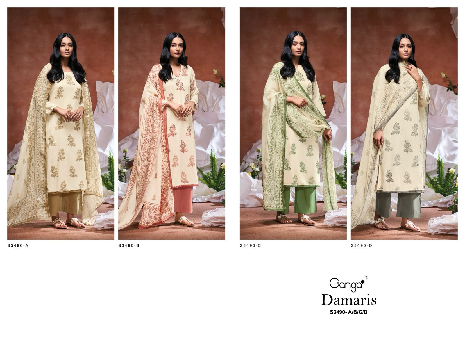 Ganga Damaris 3490 Premium Cotton Salwar Suit Embroidered Catalog.