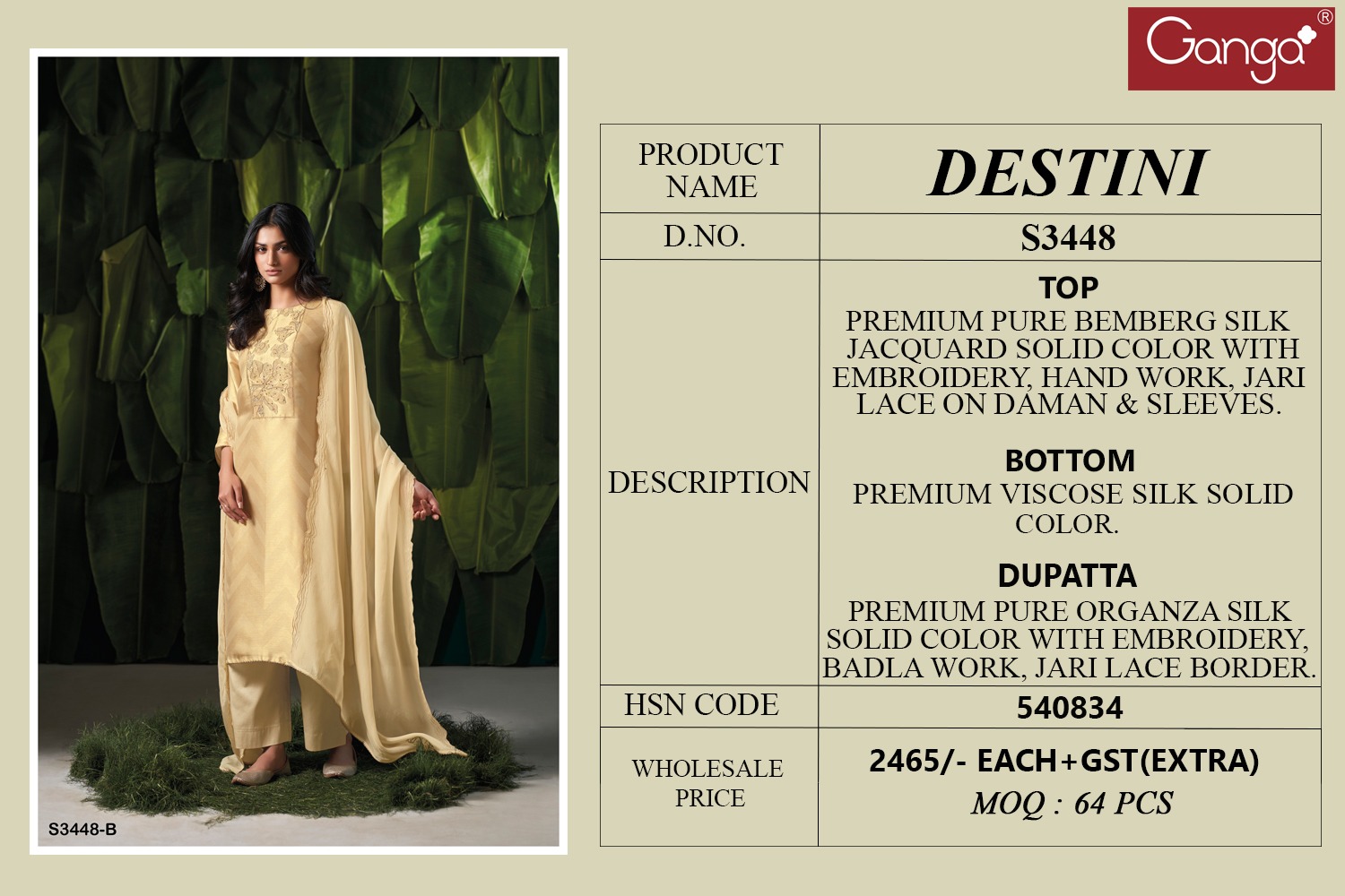 Ganga Destini 3448 Wholesale Premium Bemberg Silk Salwar Kameez.