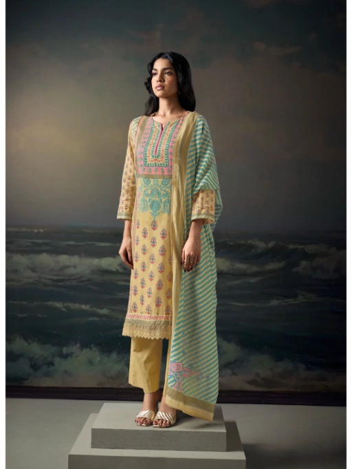 Buy Ganga Diora 3635 salwar suit collection in pure mul fabric with embroidery at a wholesale rate.