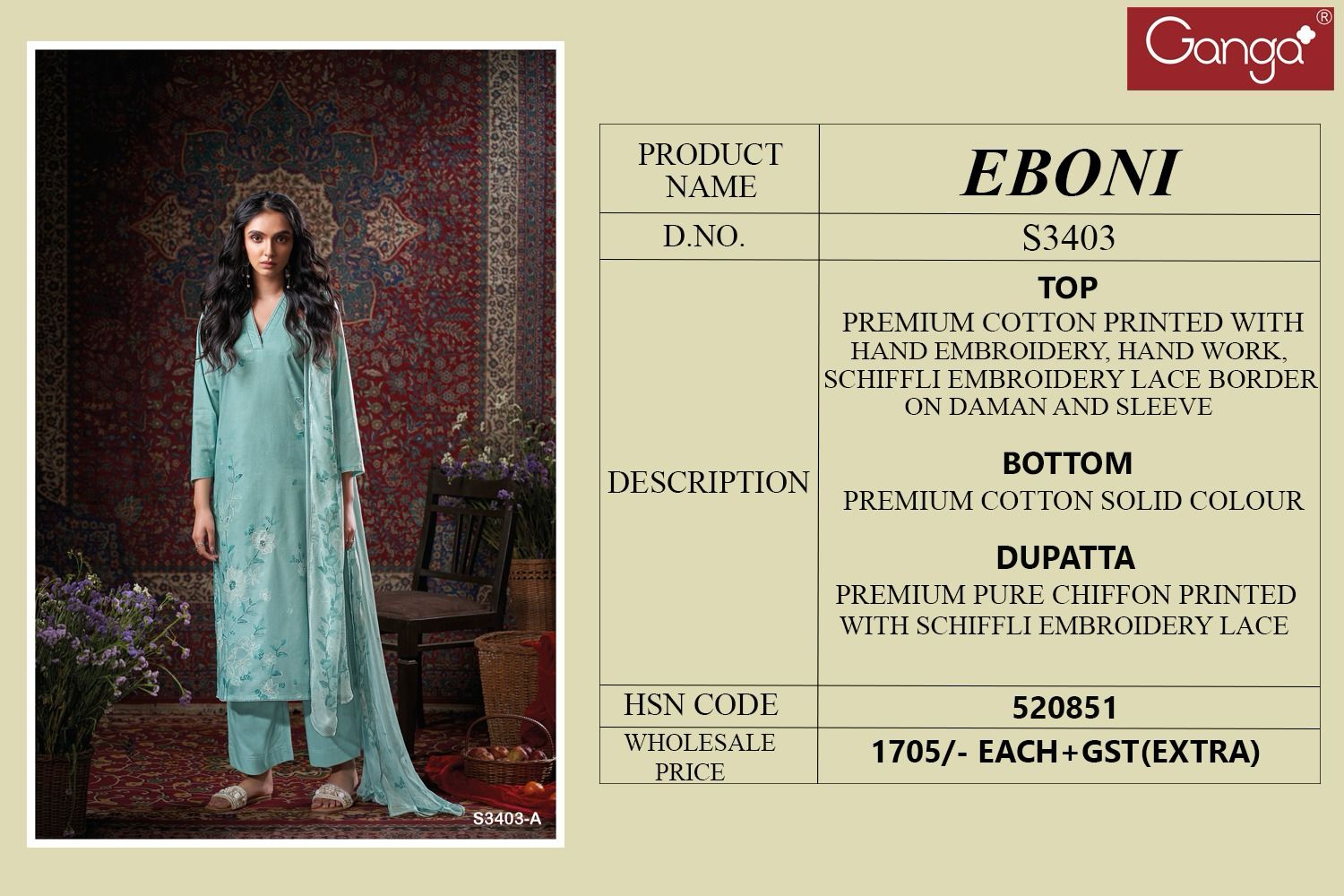 Ganga Eboni Cotton Printed Embroidered Wholesale Salwar Suit Collection