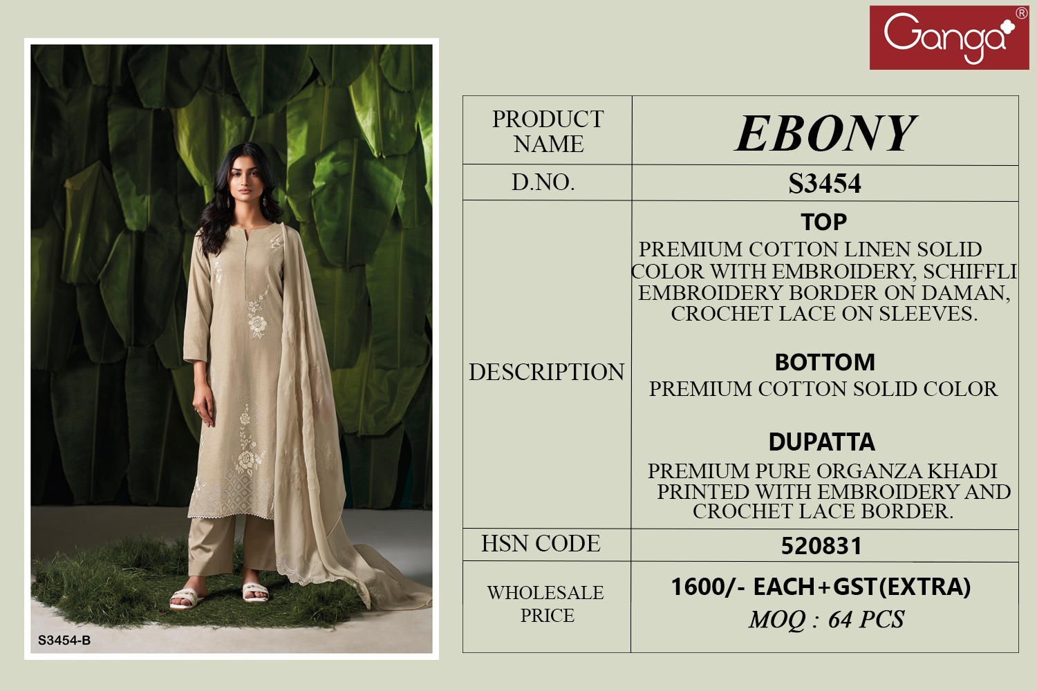Explore Ganga Ebony 3454 Cotton Linen Suit Collections here.