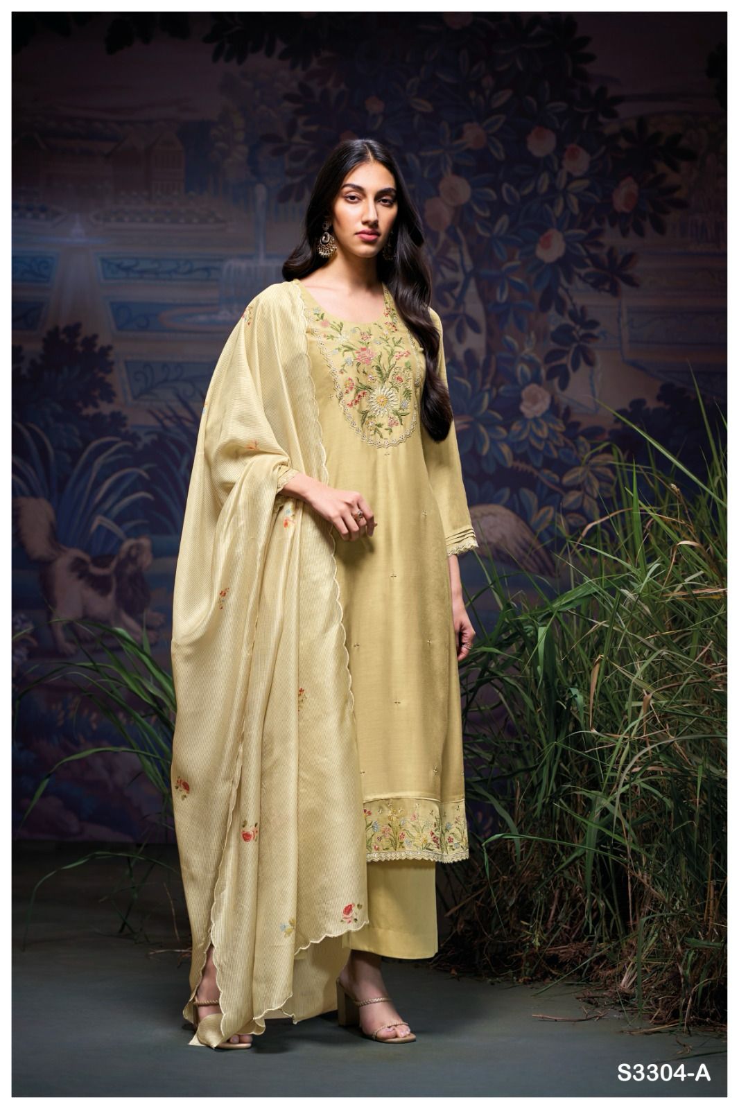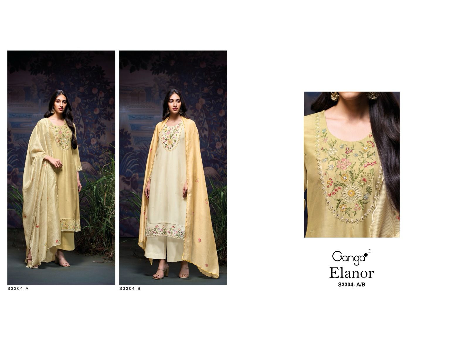 Ganga Elanor 3304 Premium Bemberg Silk Salwar Suit Embroidery Catalog