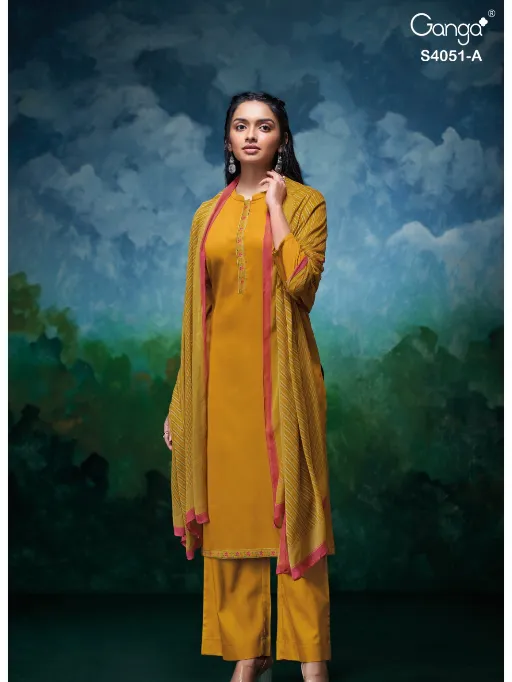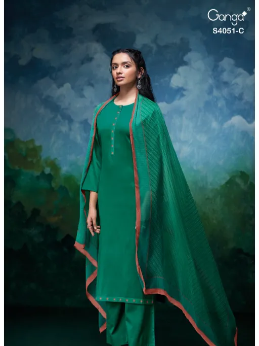 Ganga Eshal 4051 Wholesale Cotton Silk Designer Salwar Kameez.