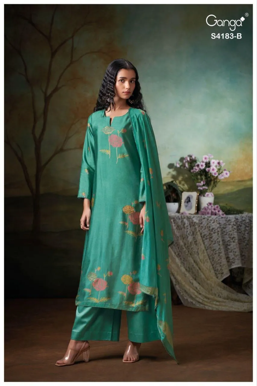 Ganga Feriel 4183 Bemberg Silk Printed Embroidery Work Salwar Suit