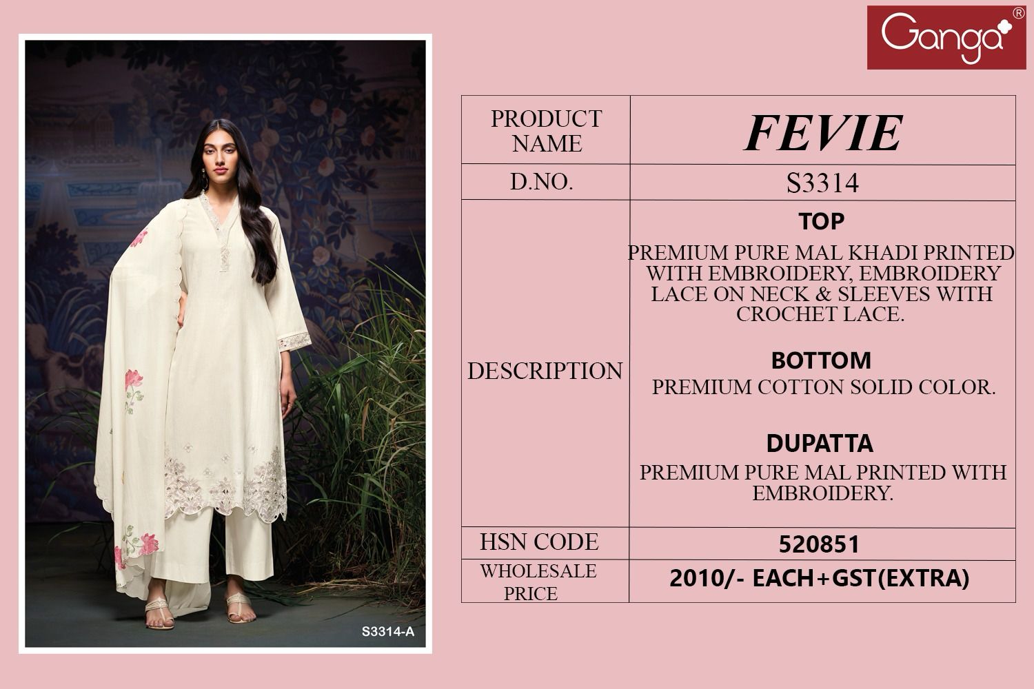 Ganga Fevie 3314 Premium Mal Khadi Embroidered Salwar Suit Collection Catalog Available At Wholesale Rate.