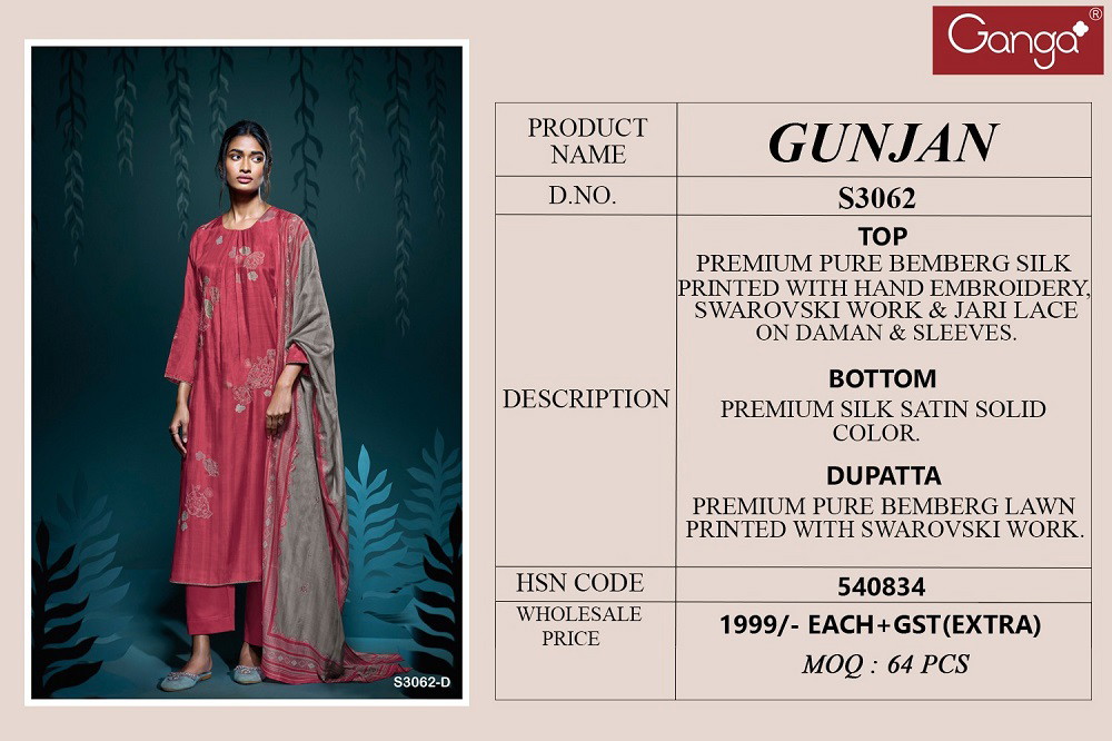 Ganga Gunjan 3062 Wholesale Silk Designer Salwar Kameez Collection