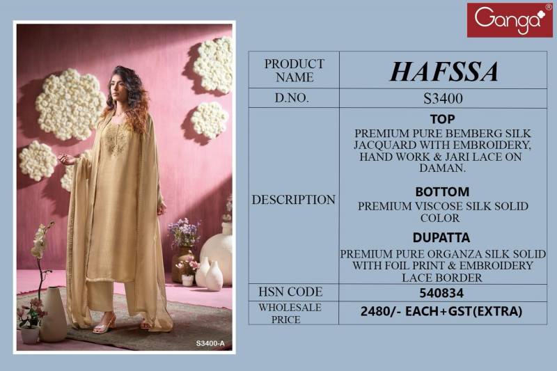 Ganga Hafssa Bemberg Silk With Embroidered Wholesale Salwar Suit Catalog