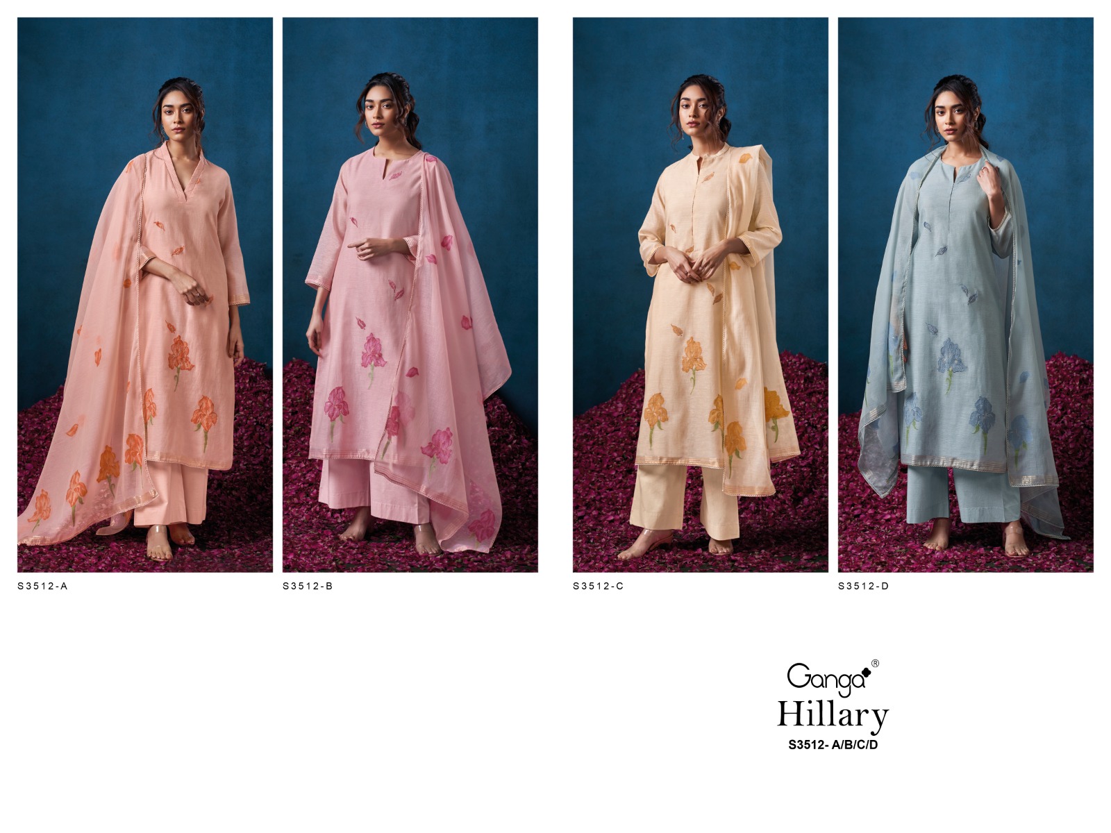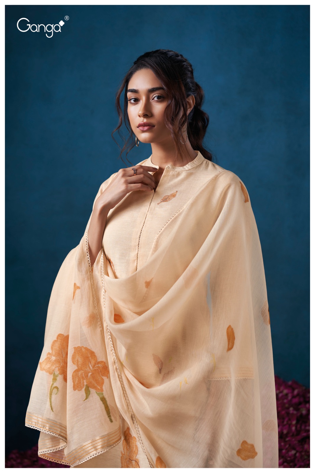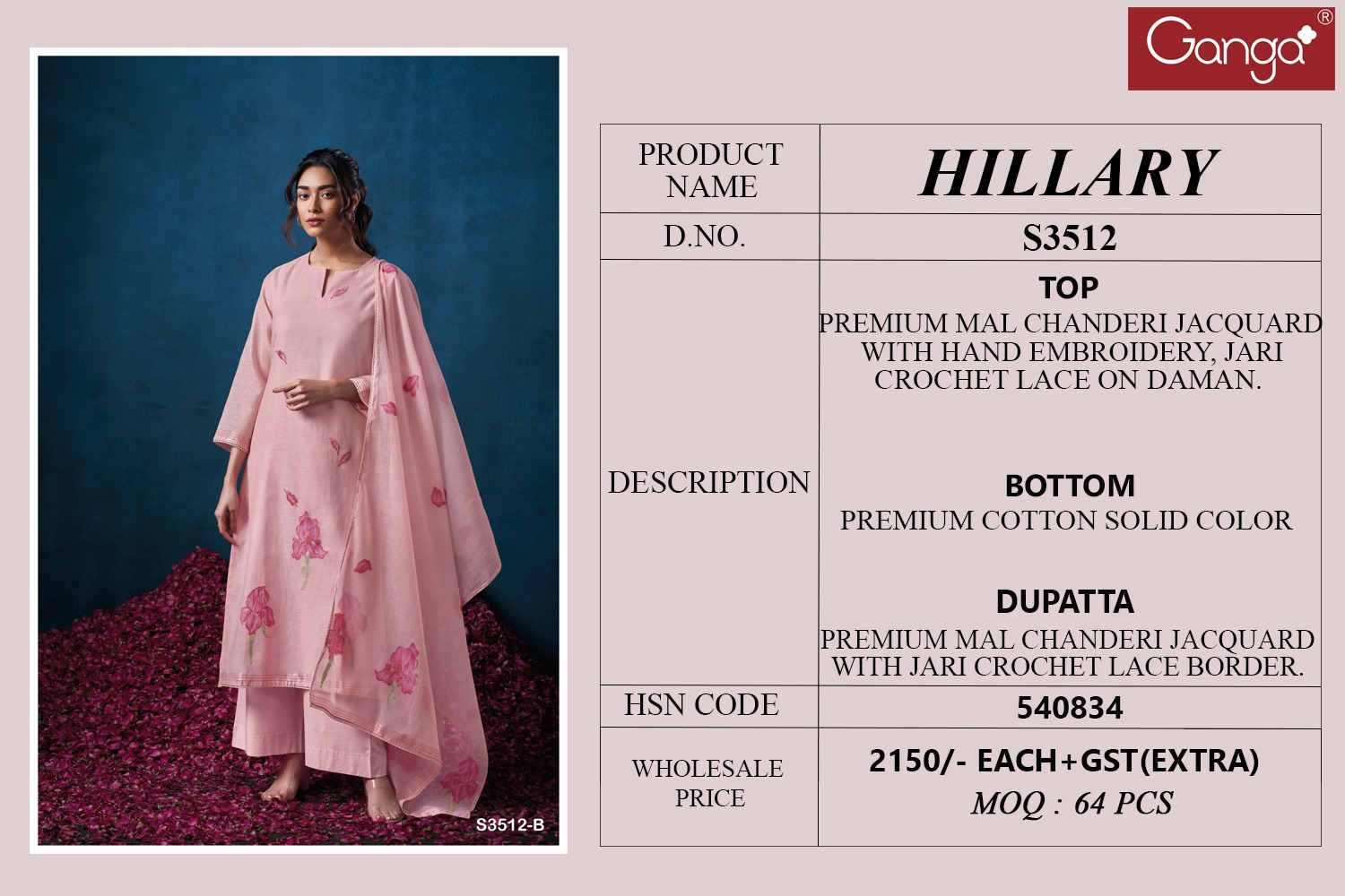 Explore Ganga Hillary 3512 Premium Mal Chanderi Suit Collections here.