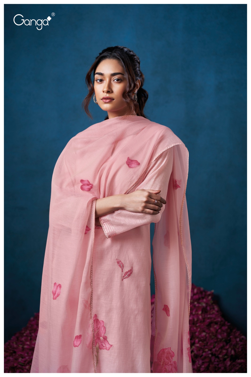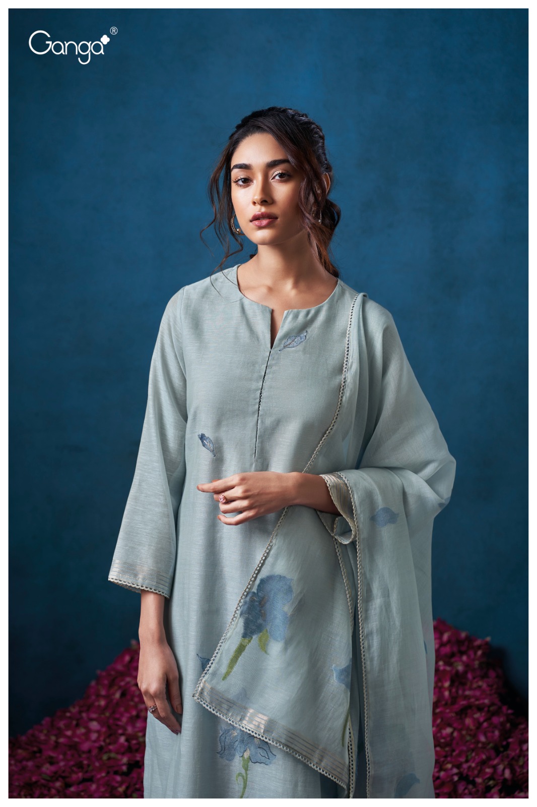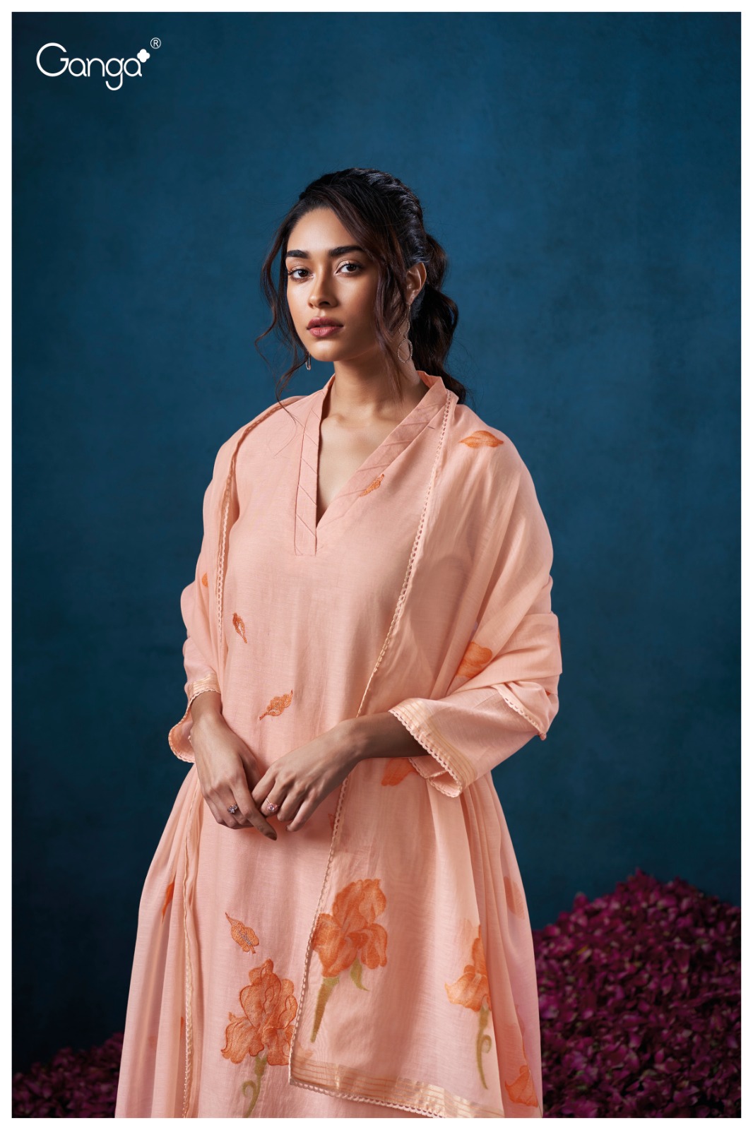 Explore Ganga Hillary 3512 Premium Mal Chanderi Suit Collections here.