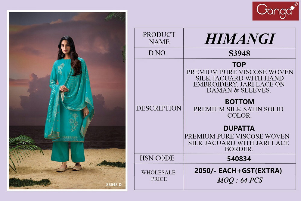 Ganga Himangi 3948 Viscose Designer Salwar Kameez Wholesale Collection.