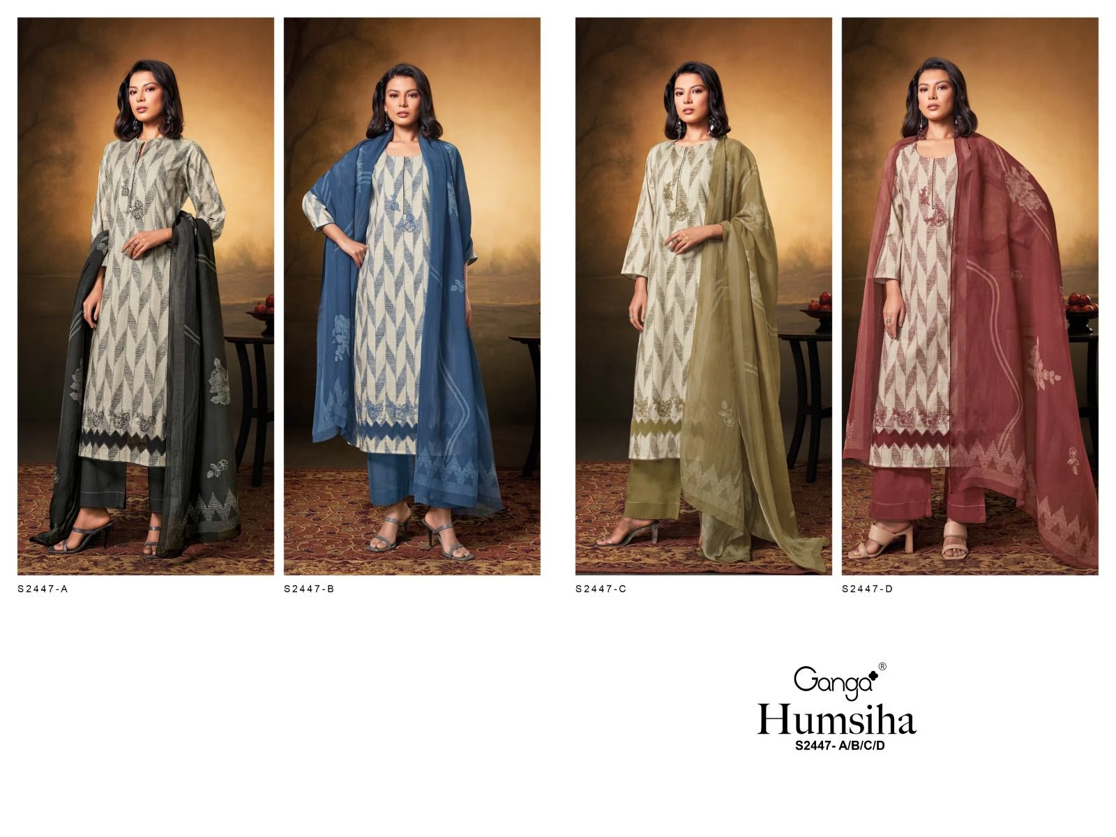 Dupatta Description: The dupattas are made from premium Bemberg silk and feature pattern prints that add an extra layer of elegance to the ensemble, offering a luxurious and coordinated look.