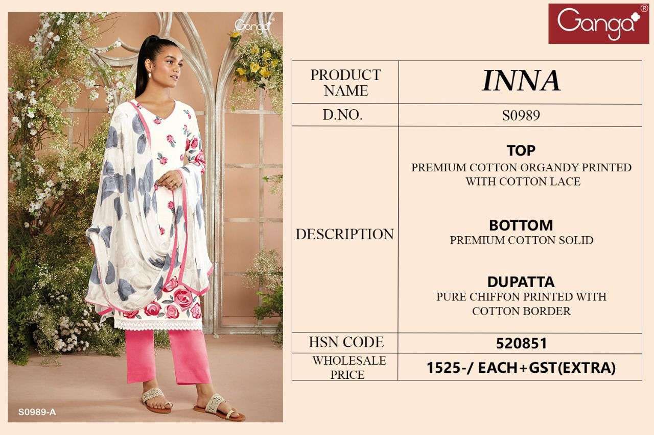 Ganga INNA 989 Premium Cotton Organdy Printed Salwar Suit Collection.