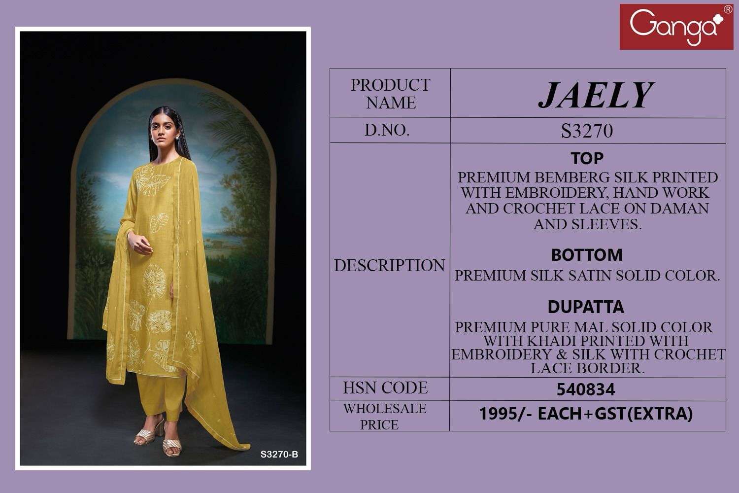 Ganga Jaely 3270 Designer Bemberg Silk Wholesale Salwar Suit Catalog.