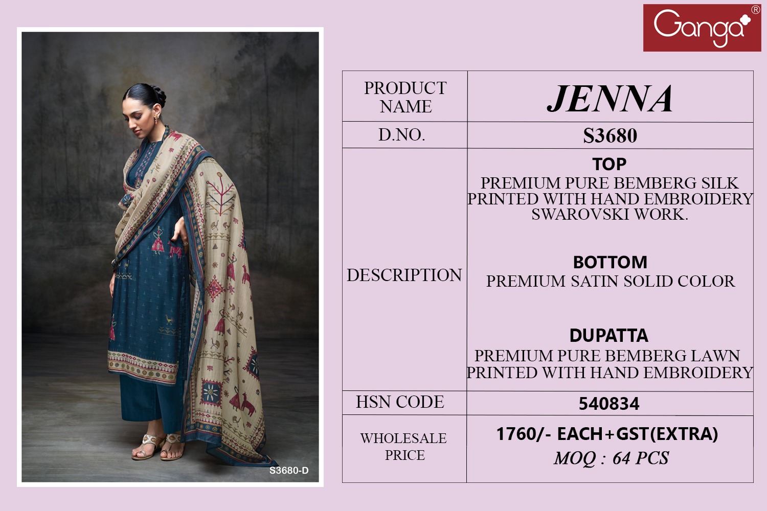 Buy Ganga Jenna 3680 luxury salwar kameez at wholesale rates.