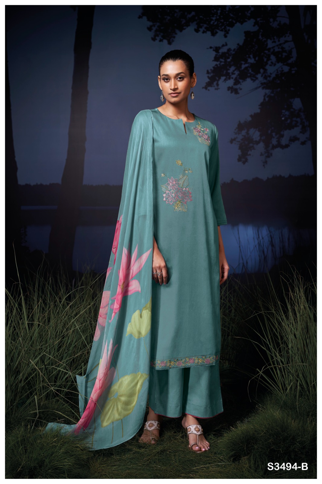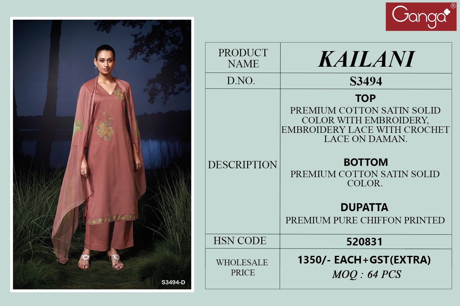 Ganga Kailani 3494 Premium Cotton Satin Salwar Suit Catalog.