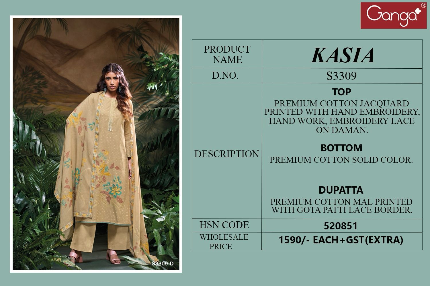 Ganga Kasia 3309 Premium Cotton Embroidery Salwar Suit Catalog.