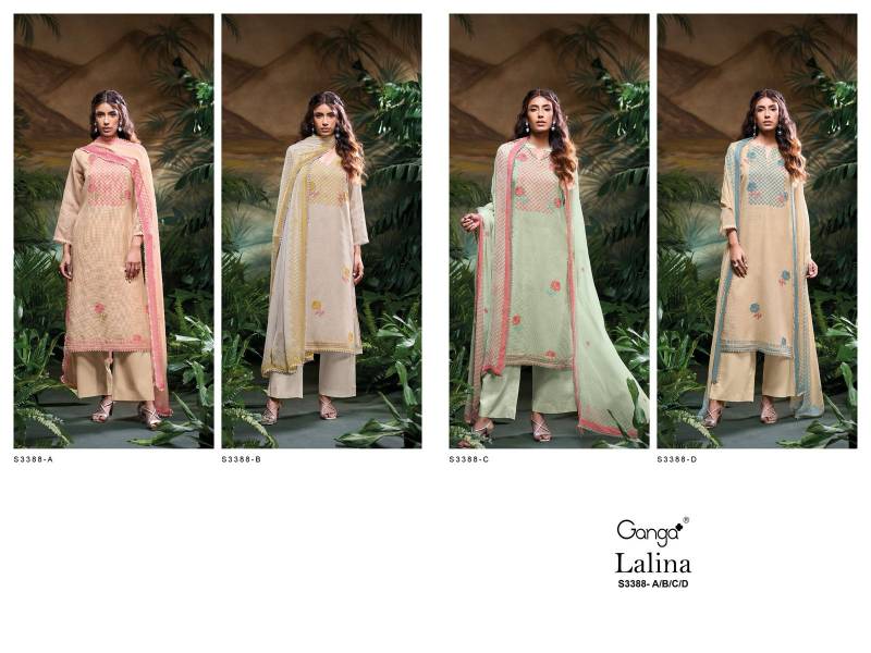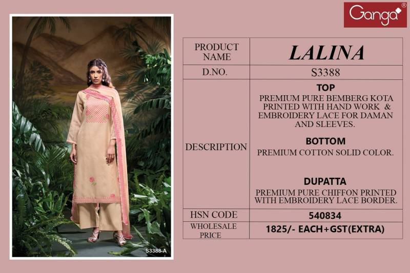 Ganga Lalina Bemberg Kota Printed With Embroidered Wholesale Salwar Suit Catalog