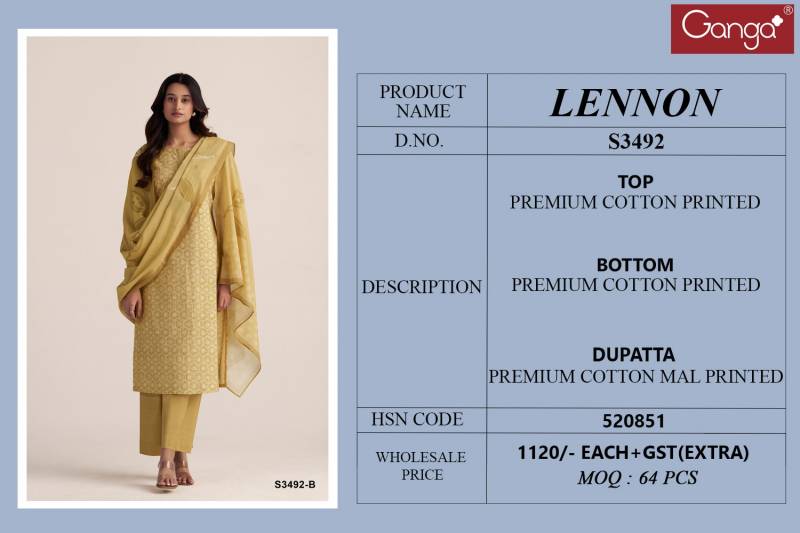 Explore Ganga Lennon Cotton Suit Collections here.