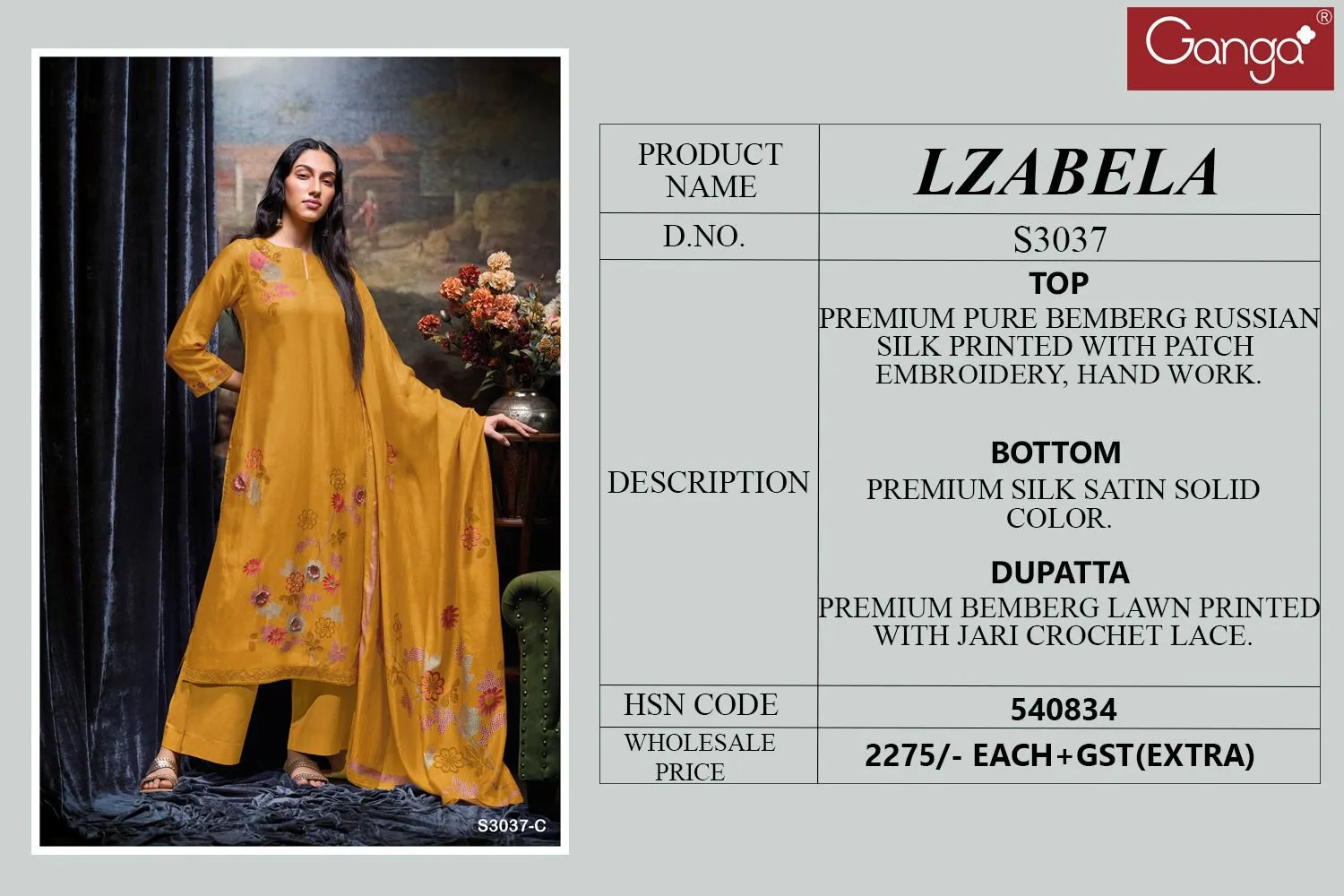 Ganga Lzabela 3037 Premium Pure Bemberg Russian Wholesale Designer Salwar Suit Collection