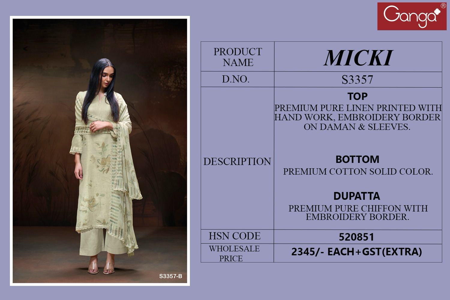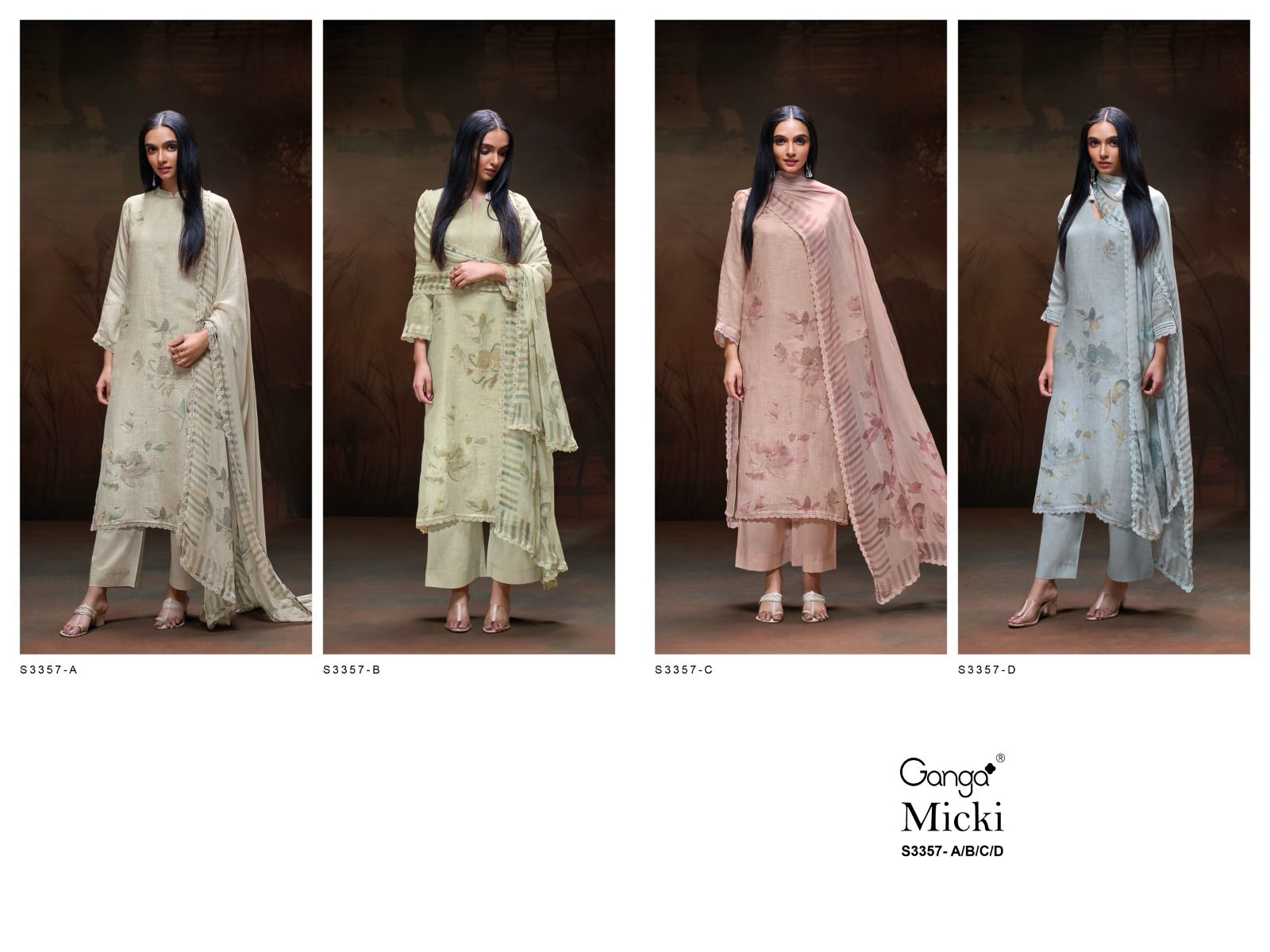 Ganga Micki 3357 Premium Pure Linen Printed Wholesale Salwar Suit Catalog.