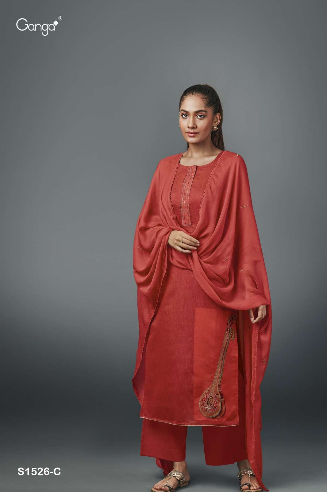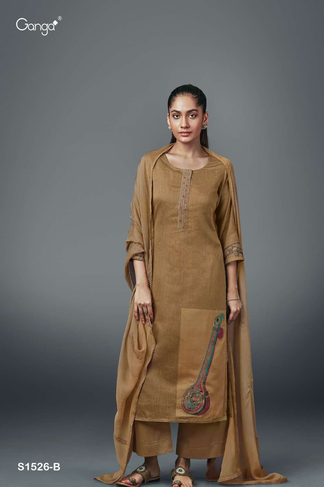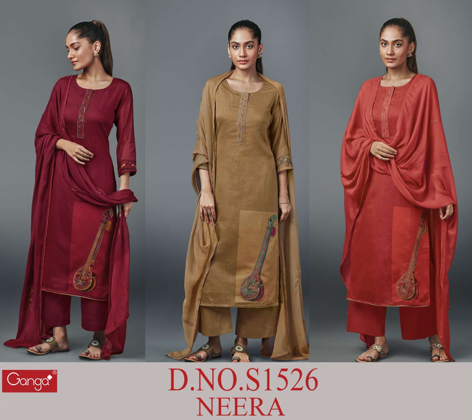 Ganga Neera 1526 Elegant Woven Silk Jacquard with Chiffon Dupatta Wholesale Suit Catalog.