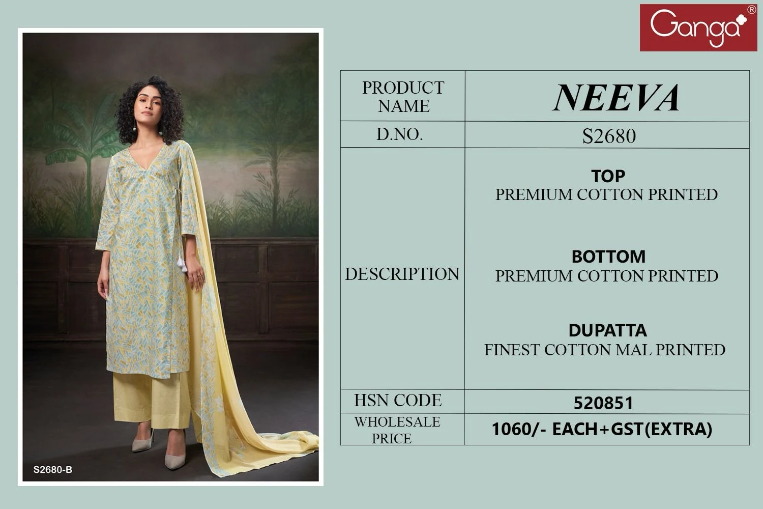 Ganga Neeva 2680 Premium Cotton Printed Wholesale Printed Salwar Suit Catalog