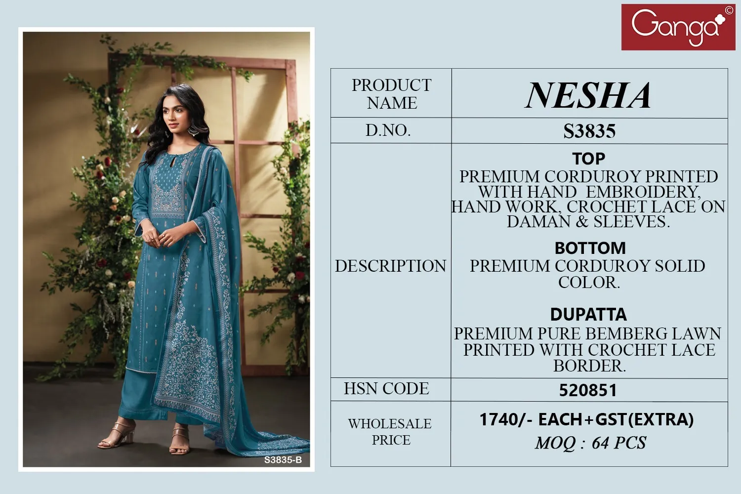 Ganga Nesha 3835 Corduroy Printed Salwar Kameez Set