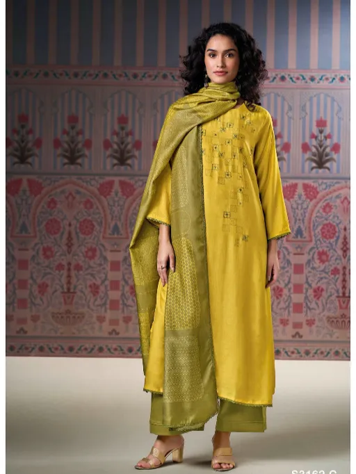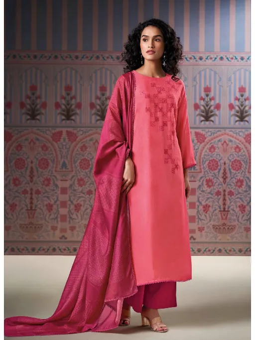 Shop Ganga Nessa 3162 pure Bemberg silk suits with hand embroidery & lace detailing. Premium fabric set at wholesale price from Vardan Ethnic.