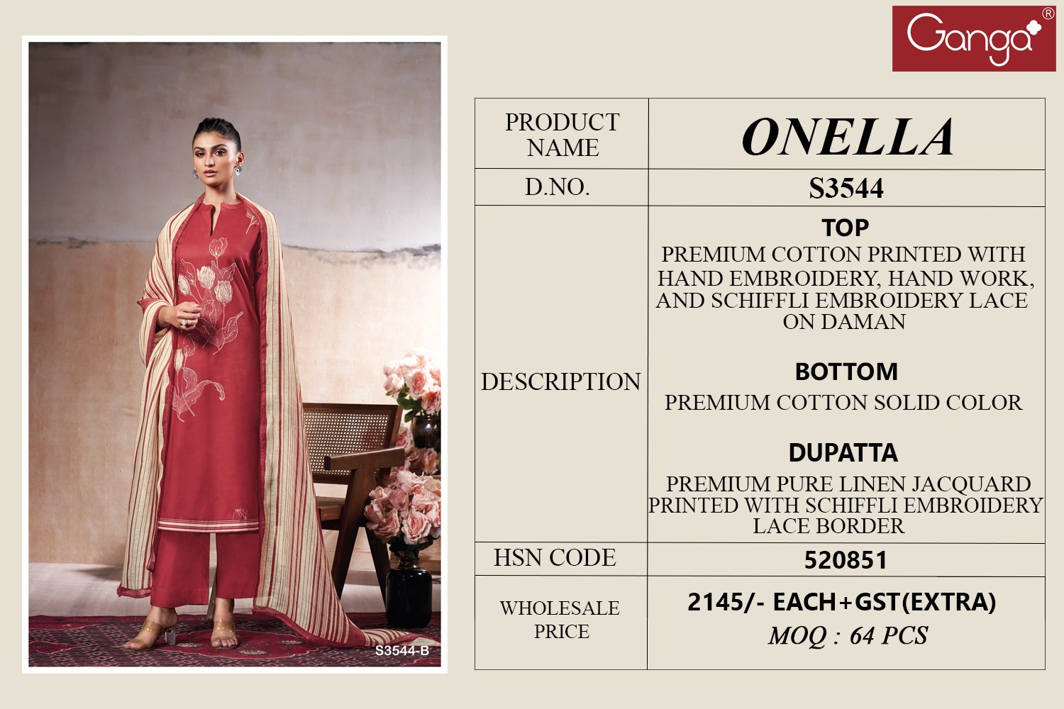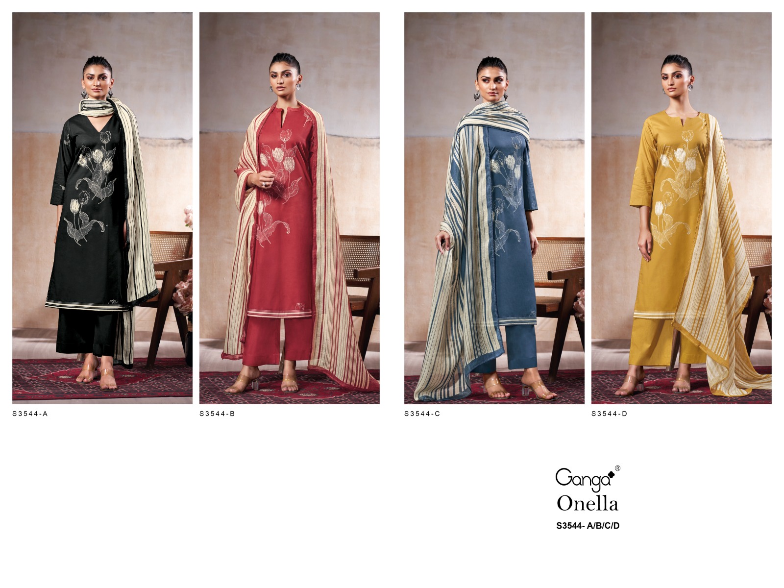 Explore Ganga Onella 3544 premium cotton embroidered suits here.